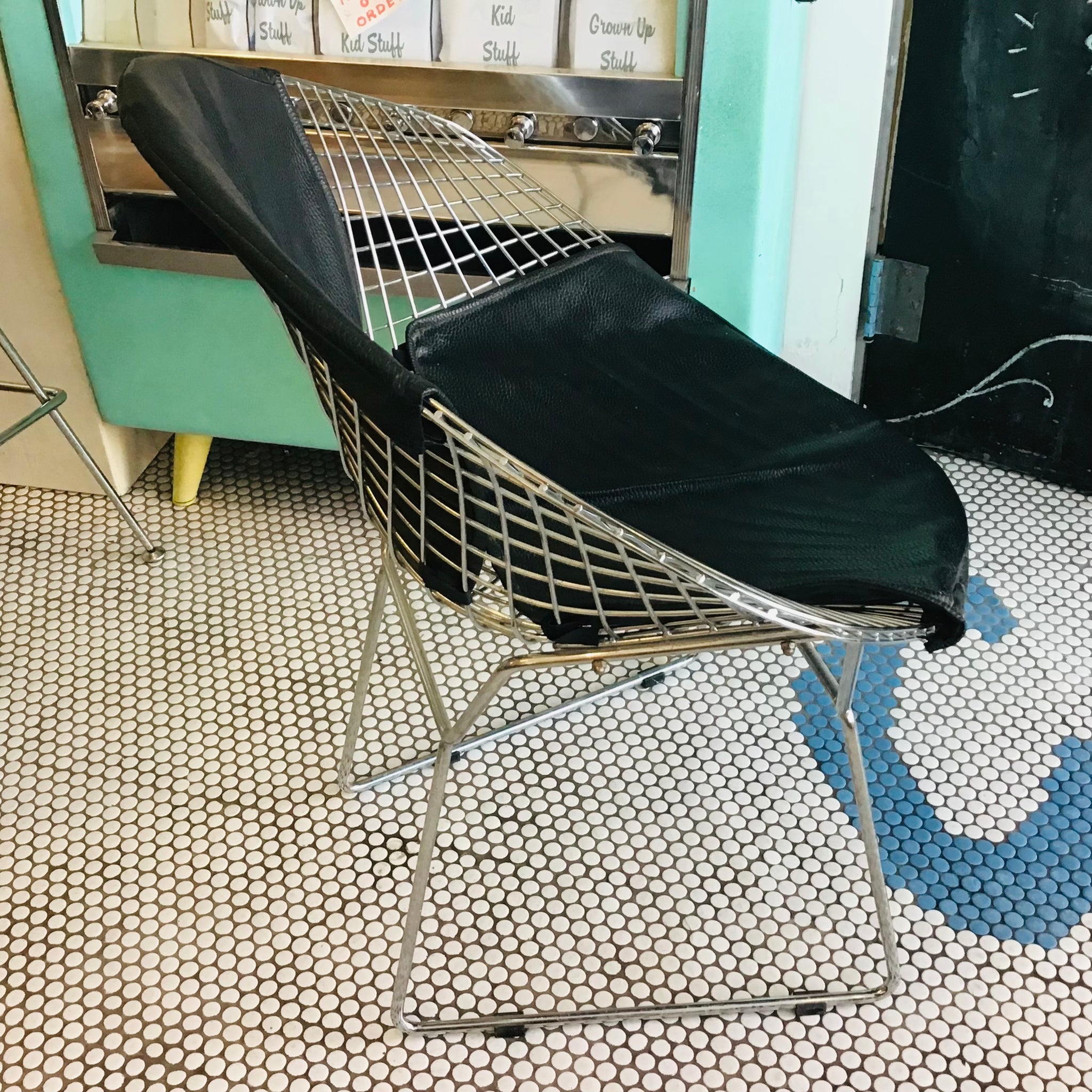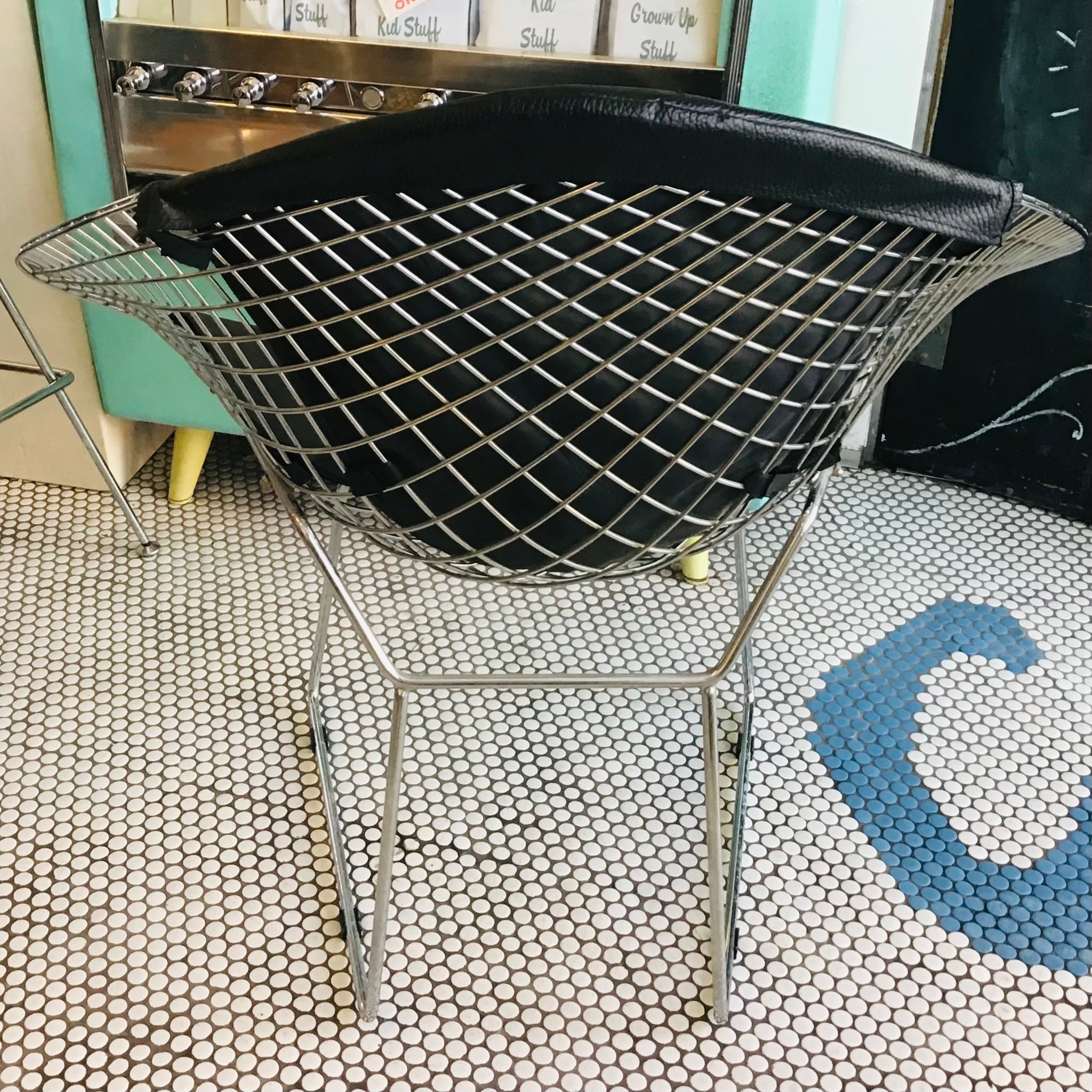 Reproduction of the Harry Bertoia designed Diamond Chair. Chrome frame with removable seat & back pad. No, this is not a Knoll original, but it still looks very cool, and is in great shape.