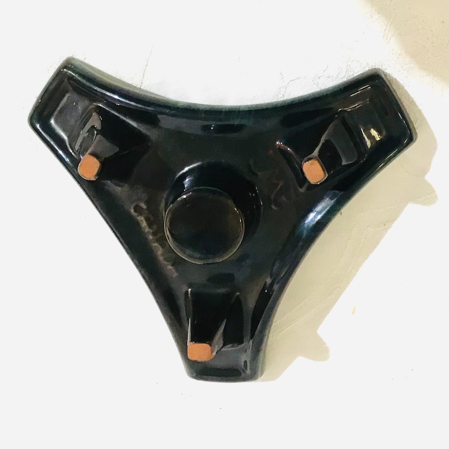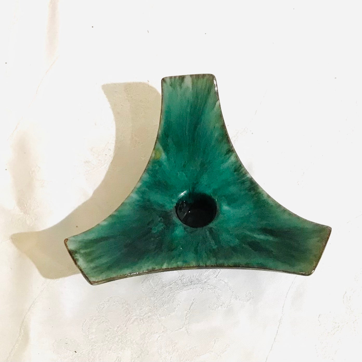 Vintage blue mountain pottery candlestick in the classic blue green glaze.