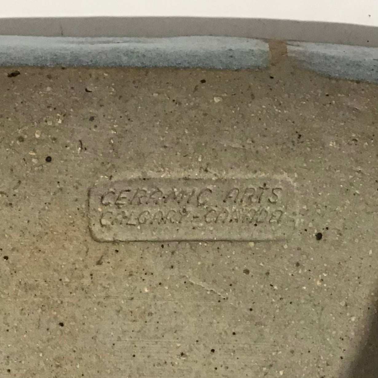 Vintage studio, ceramic ashtray, featuring blue glaze and foliage reveal detail. Made by Ceramic Arts in Calgary, Alberta.