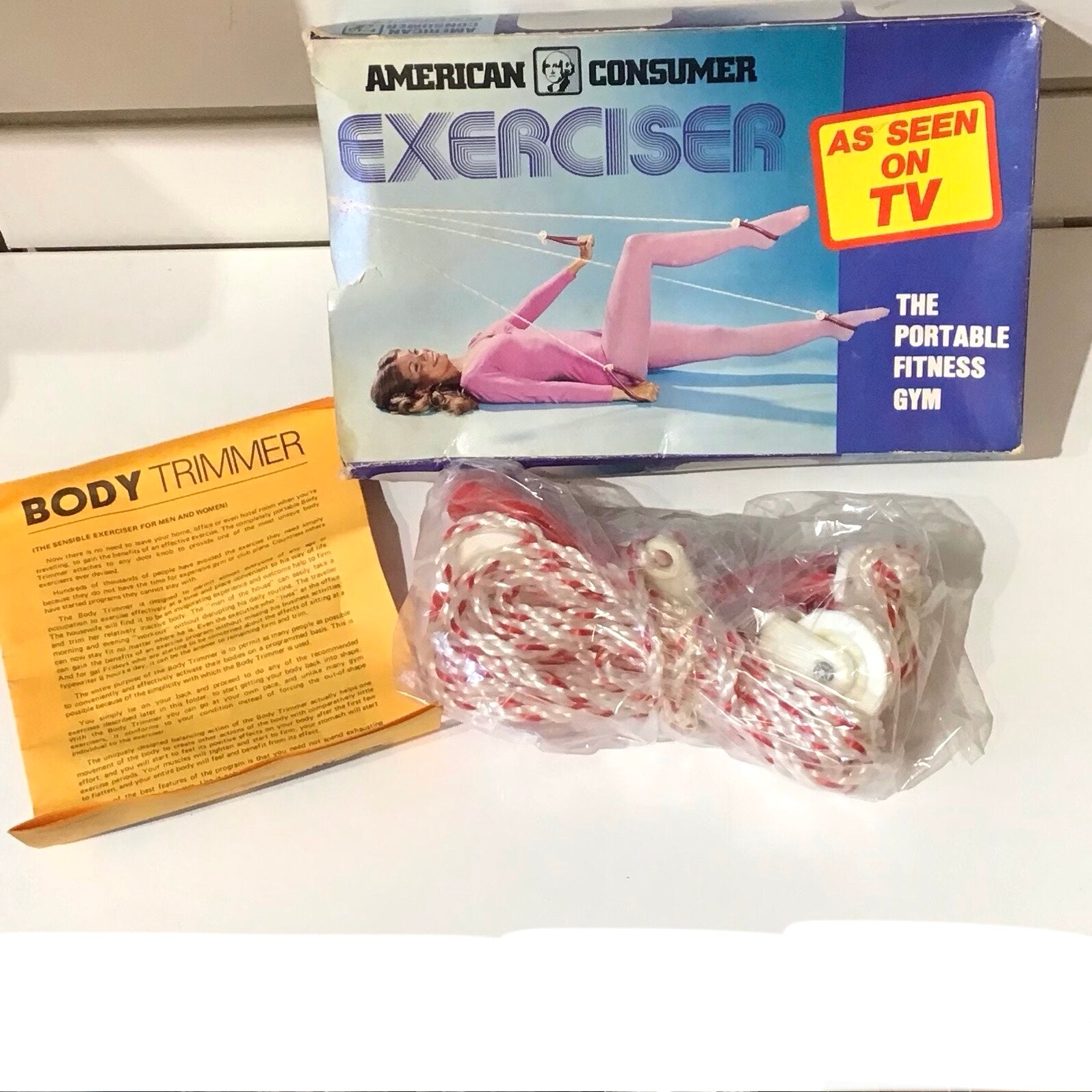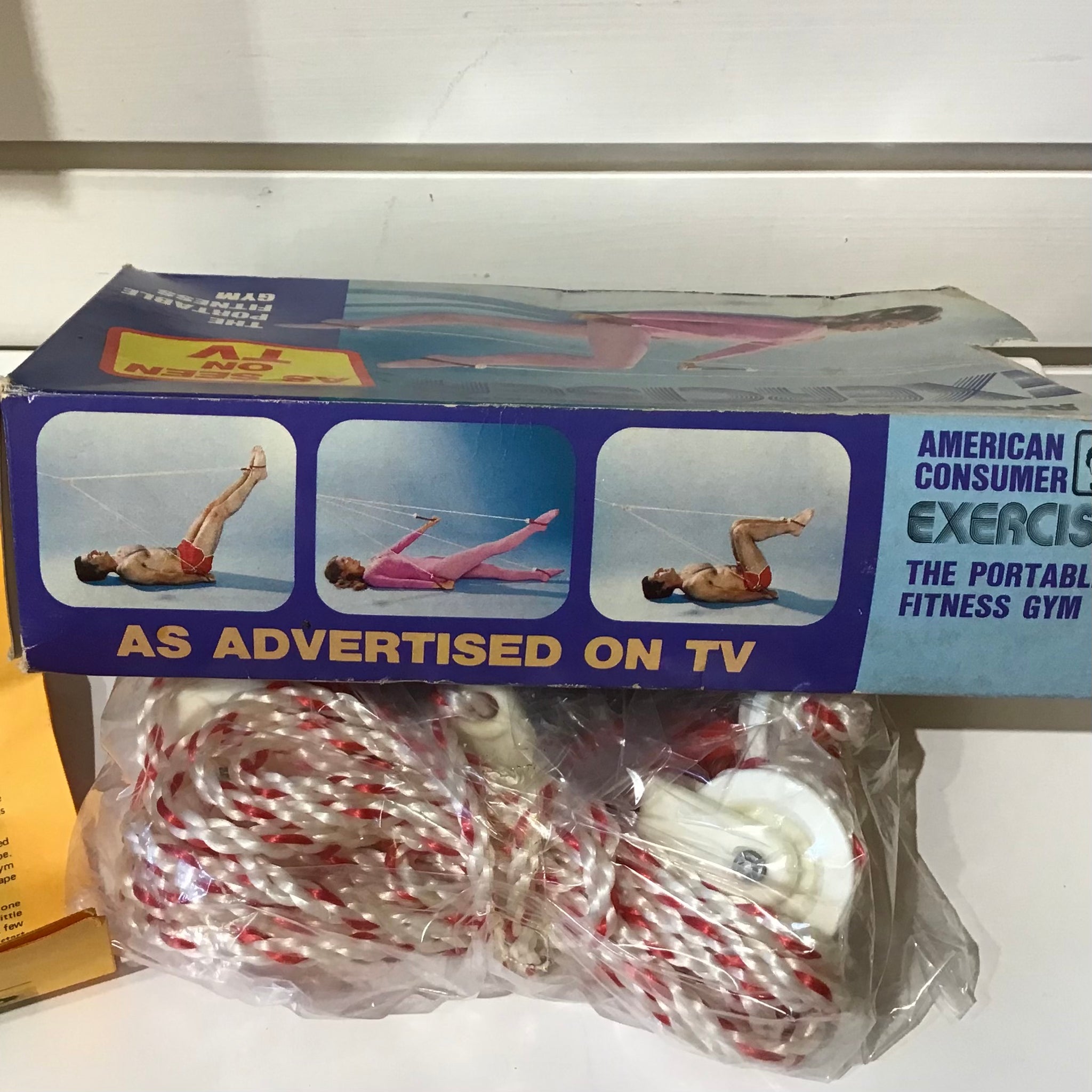 As Seen On TV Exerciser, the portable fitness gym. Brand new in box, comes with original packaging and instructions. Distributed by American Consumer in Philadelphia Pennsylvania.