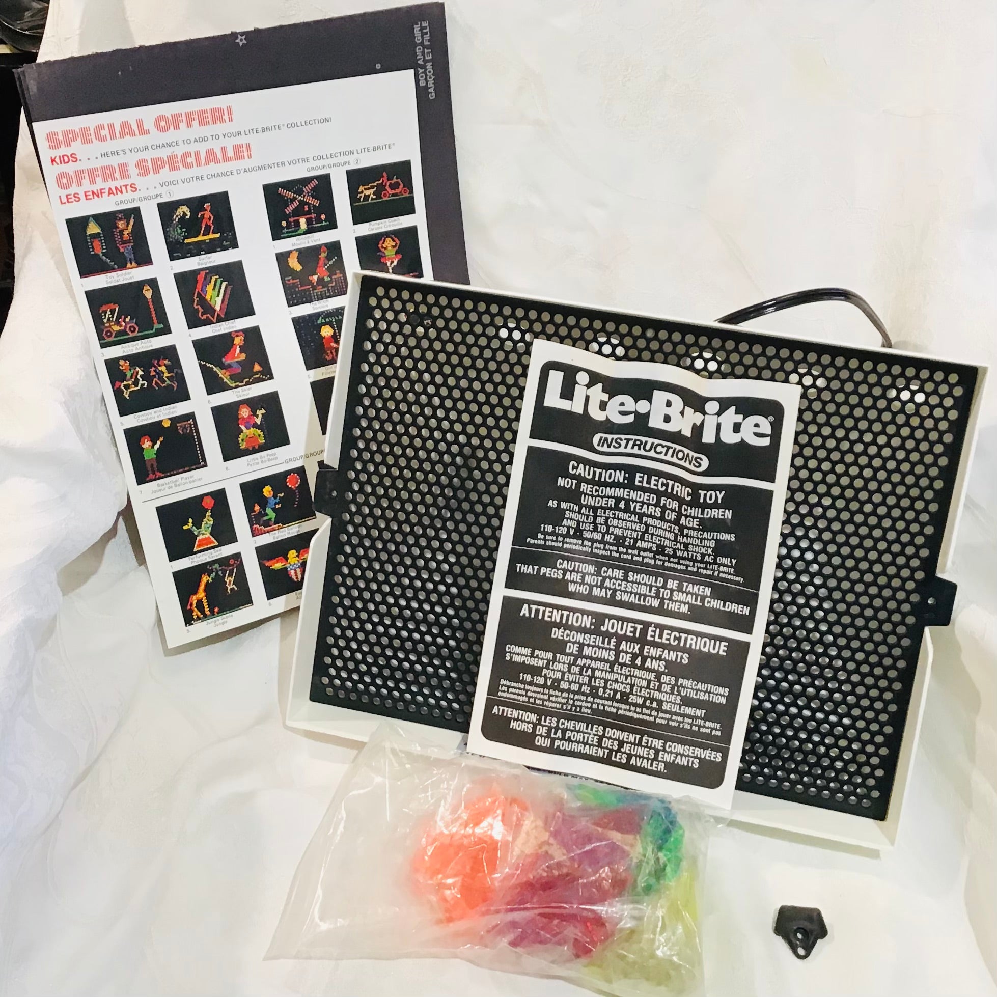 Vintage LiteBrite toy including light box, peg board, pegs, paper stencils and more. Brand new, never been used. Original box. Perfect for some old school fun!