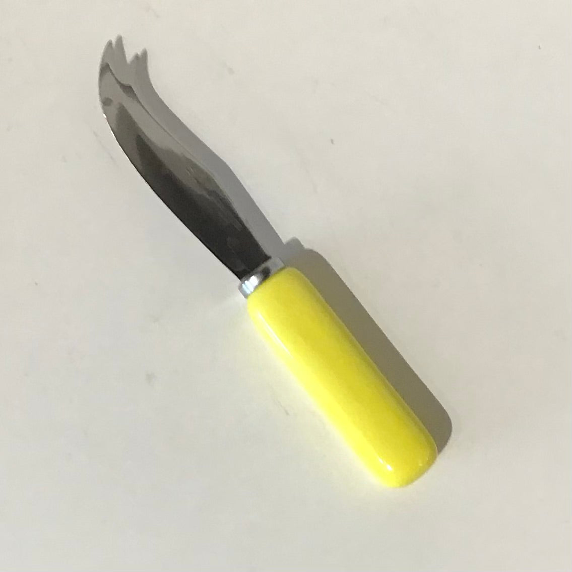 Is your groovy, vintage cheeseboard missing a knife? We’ve got you covered! Made in Japan cheese knives with stainless steel blades, and red, yellow, and white handles.