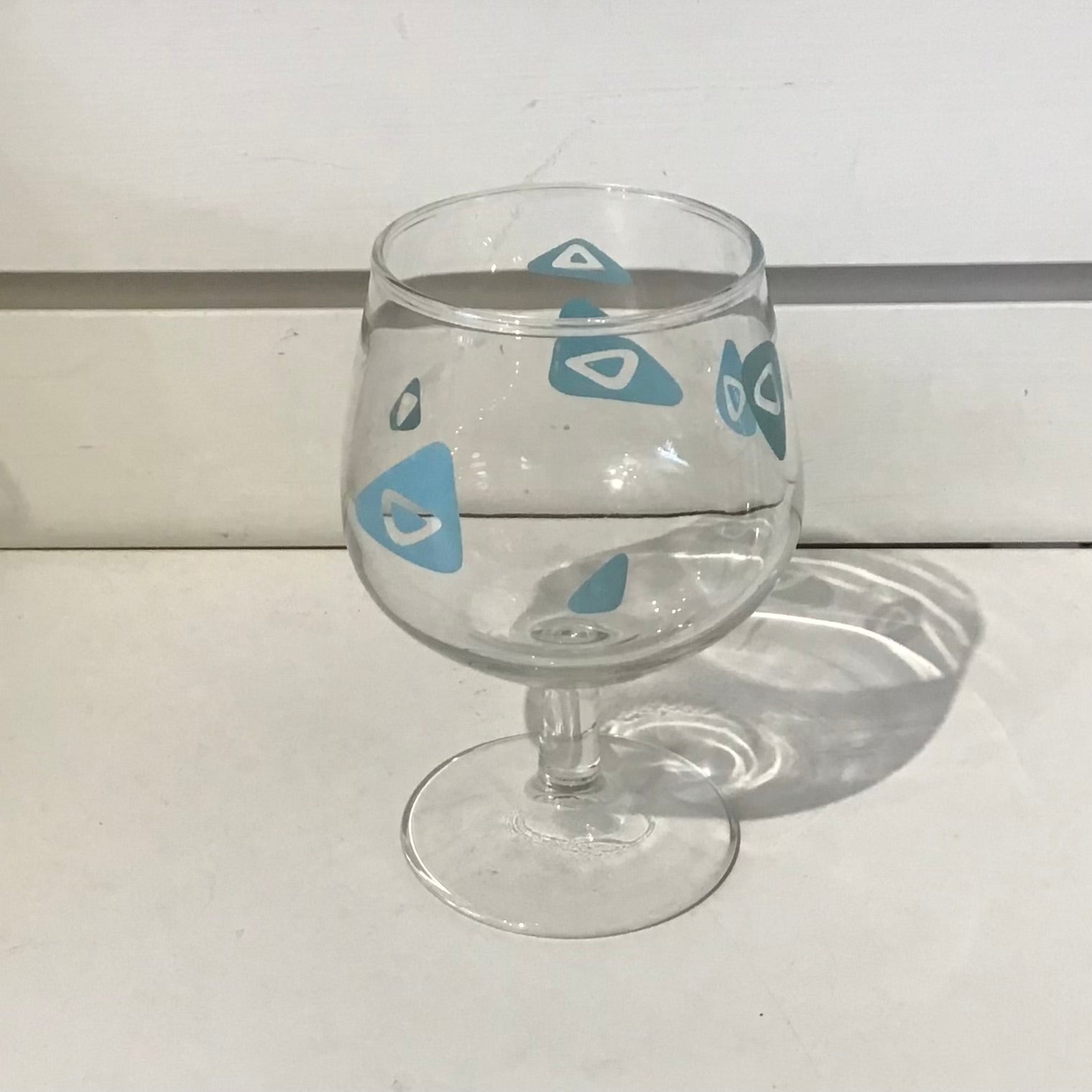 Federal Glass Capri pattern Boomerang cocktail glasses featuring 1950s gold and turquoise amoebas. Pilsner glasses, highballs and classic cocktail glasses available. Sold as singles or in pairs.