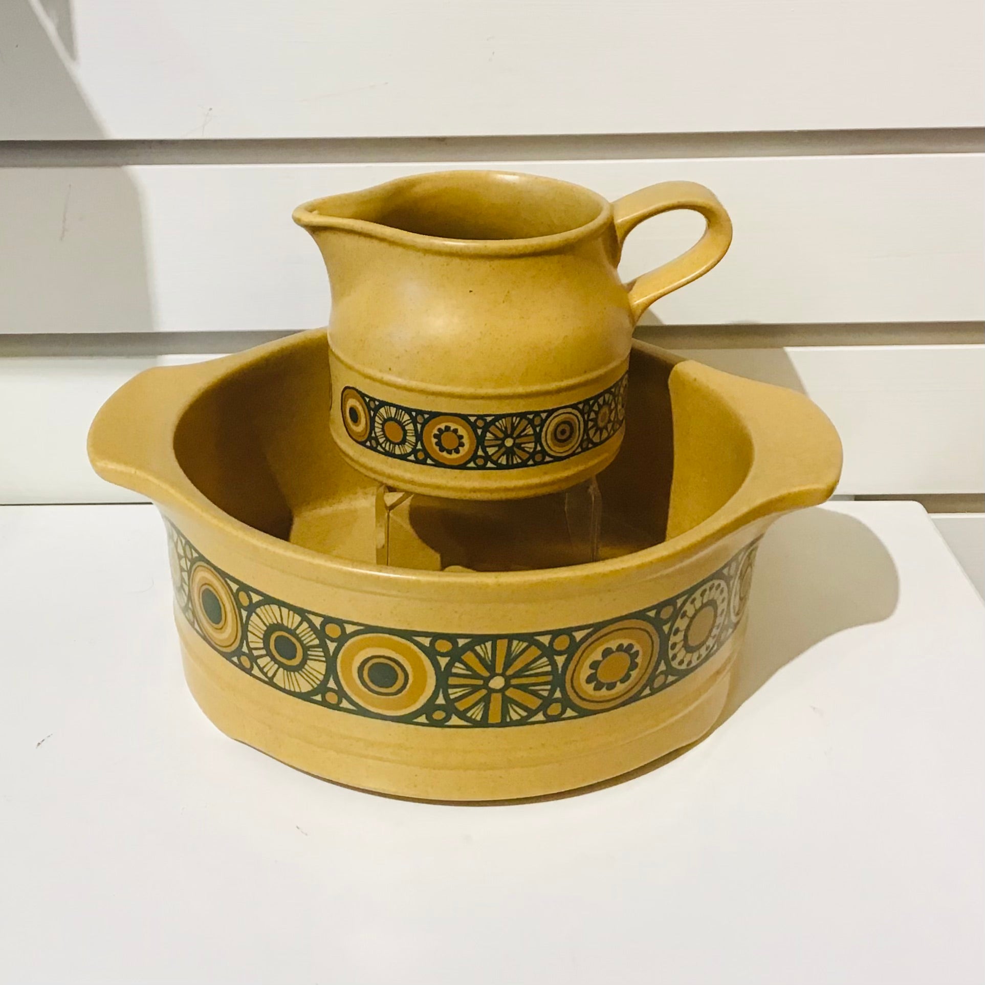 Vintage 1970s Kiln Craft Staffordshire Ironstone, “Bacchus” pattern. Casserole dish and a small jug available. Made in England.