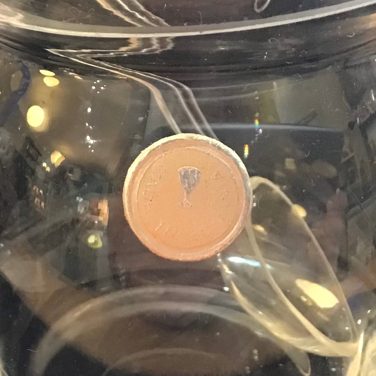 Vintage clear glass sugar bowl with lid and spoon. Spoon notch in lid has small chip. Original label, but we’re not entirely sure where it’s from.