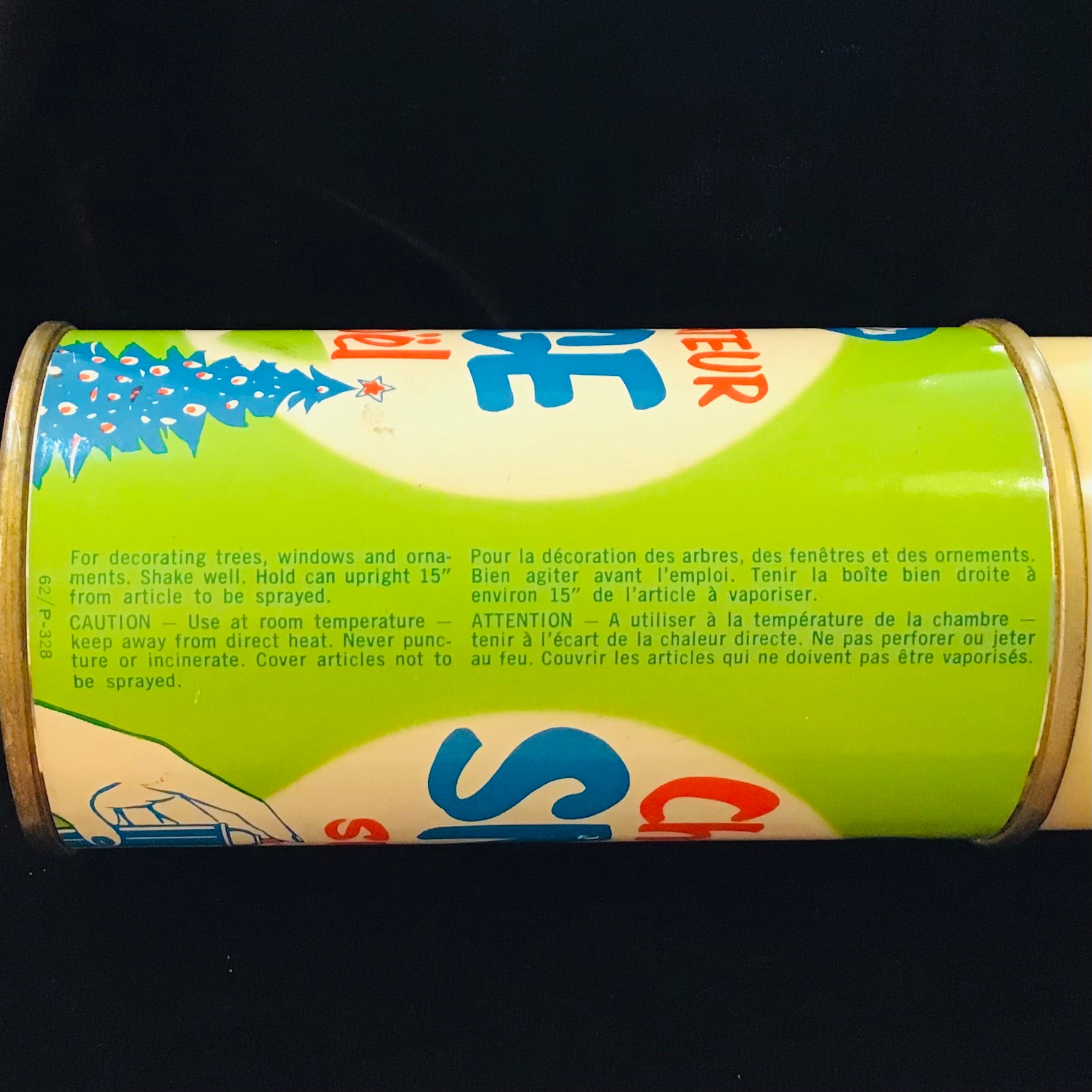 Vintage G.H. Wood’s Christmas snow spray, made by G. H. Wood and Company Limited in Canada. We do not recommend using this because it is basically asbestos in a can but it’s a great Christmas prop with the original packaging.
