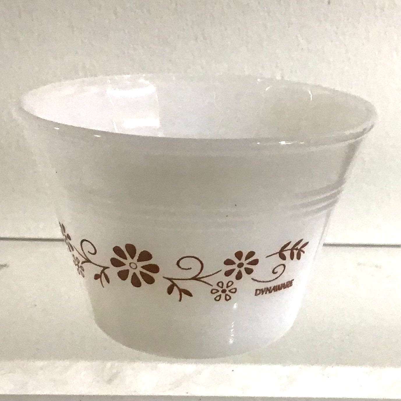 Vintage Termocrisa ramekin bowls featuring a floral garland in brown. Made in Mexico. Four available.