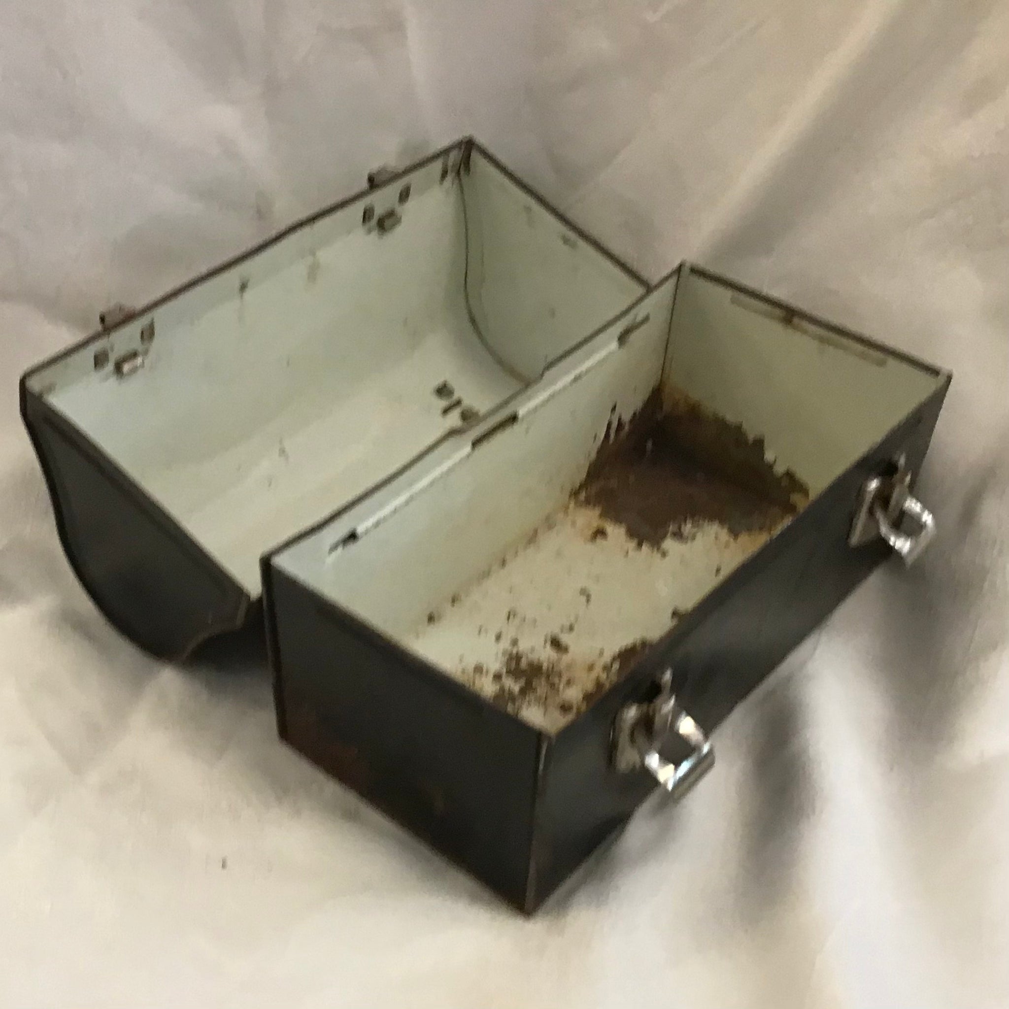 Old school metal lunchbox, just like yer grandpa carried to the old sawmill. Well, like MY grandpa Carr to the old sawmill. Wear and corrosion consistent with age.